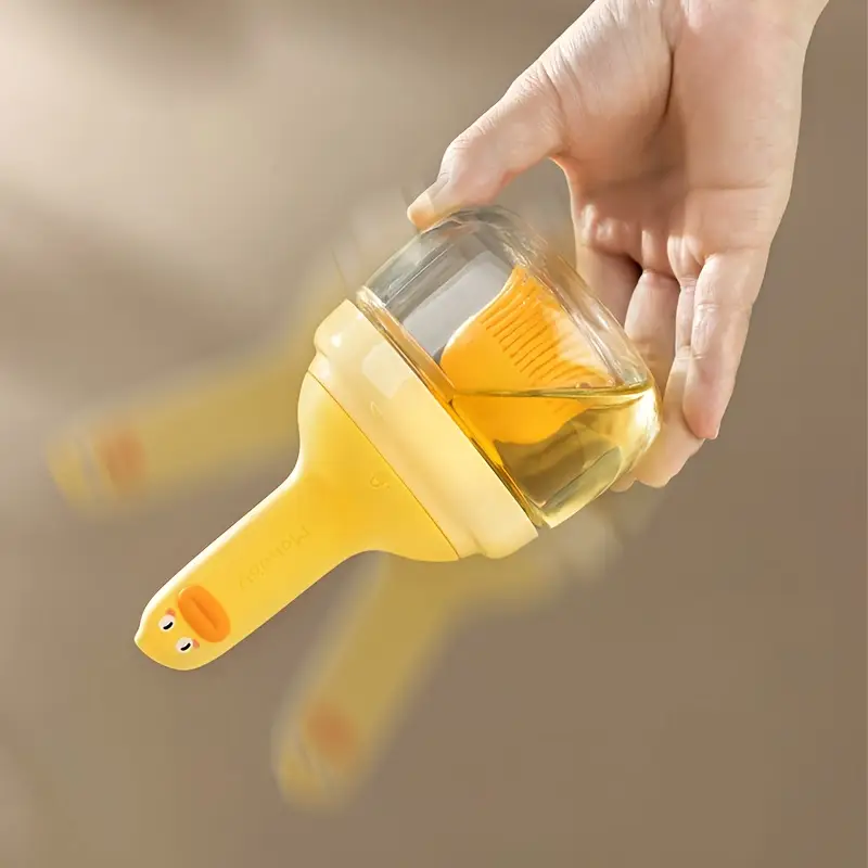 1pc Cartoon Duck-Shaped Barbecue Oil Bottle, Comes with an Oil Brush, Silicone Grip, Can Hold Oil Inside, Baking Brush, Barbecue Brush, Easy to Clean, Kitchen Gadget, Super Cute Design, Integrated Oil Bottle.