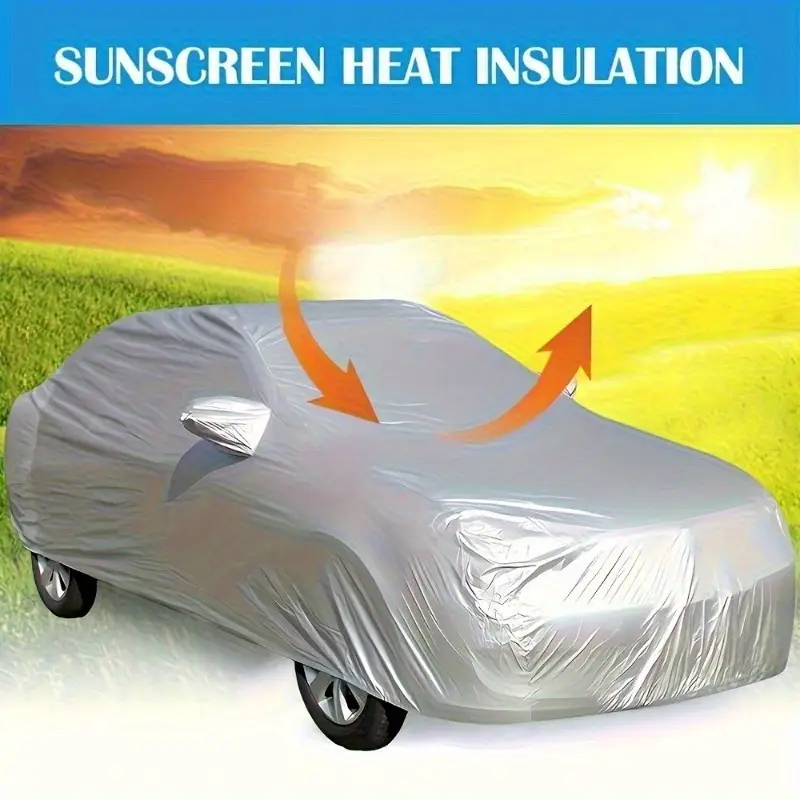 1pc Universal Waterproof Car Cover – UV, Rain, Dust, Snow & High-Temperature Resistant PEVA Material, All-Season Vehicle Protection, Dustproof, Silvery Appearance, Auto Accessories, Car Covering|Sleek Car Cover|Durable Car Cover, Car Covering