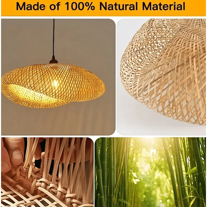 1pc Woven Bamboo Chandelier Shade – Rustic Style, Vintage Craftsmanship, Suitable for Kitchen Island and Dining Room, Metal Frame, No Electricity Components, 1pc, Vintage Lighting Accessory | Rustic Bamboo Design | Durable Bamboo Lampshade, Bamboo Light