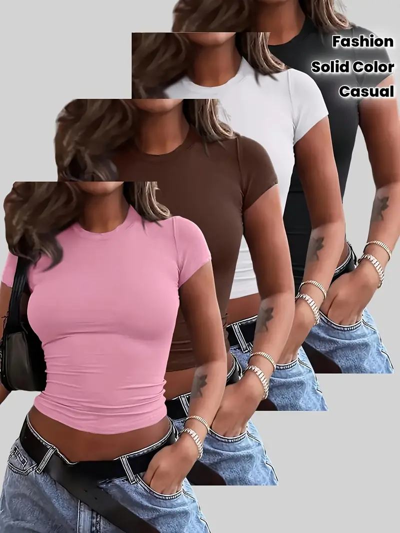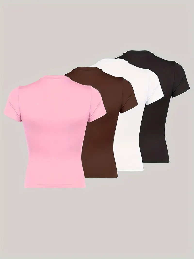 4-Pack Women’S Fashion Slim Fit Solid Color T-Shirts