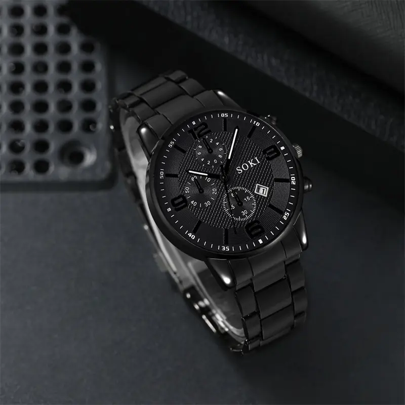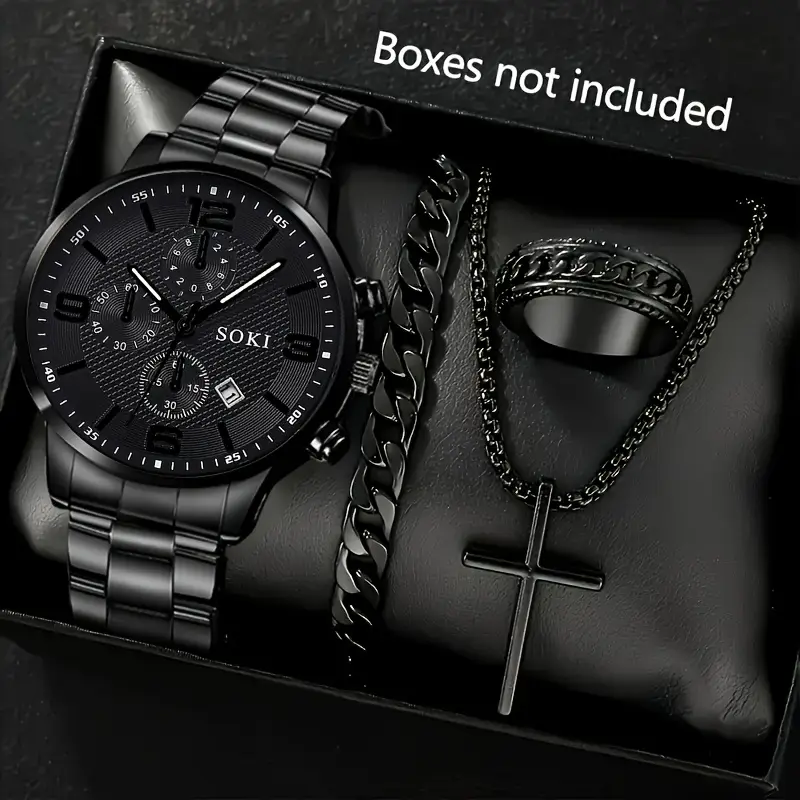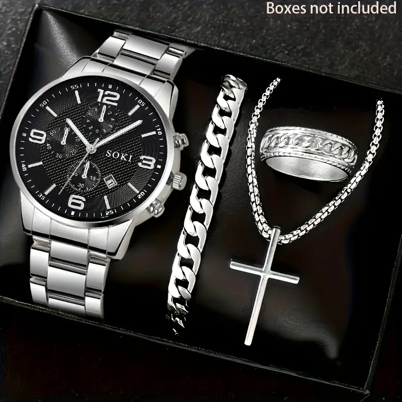 4pcs Men’s & Women’s Sports Quartz Watch Set with Ring, Bracelet, and Necklace