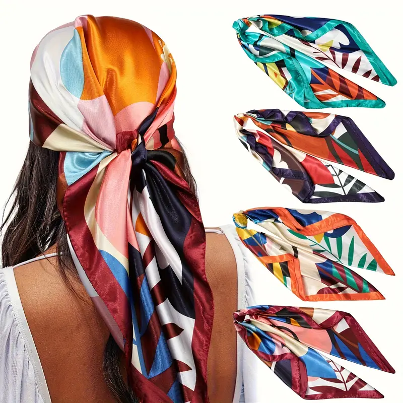 4pcs Women’s Elegant Polyester Square Scarves