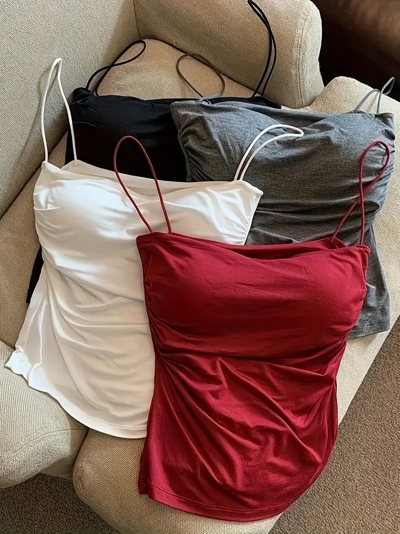 4pcs Women’S Sexy Ruched Edge Tank Tops with Thin Straps and Beautiful Backs,