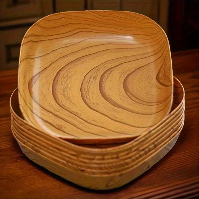– Square Washable Serving Trays with Wood Grain Design for Sushi,