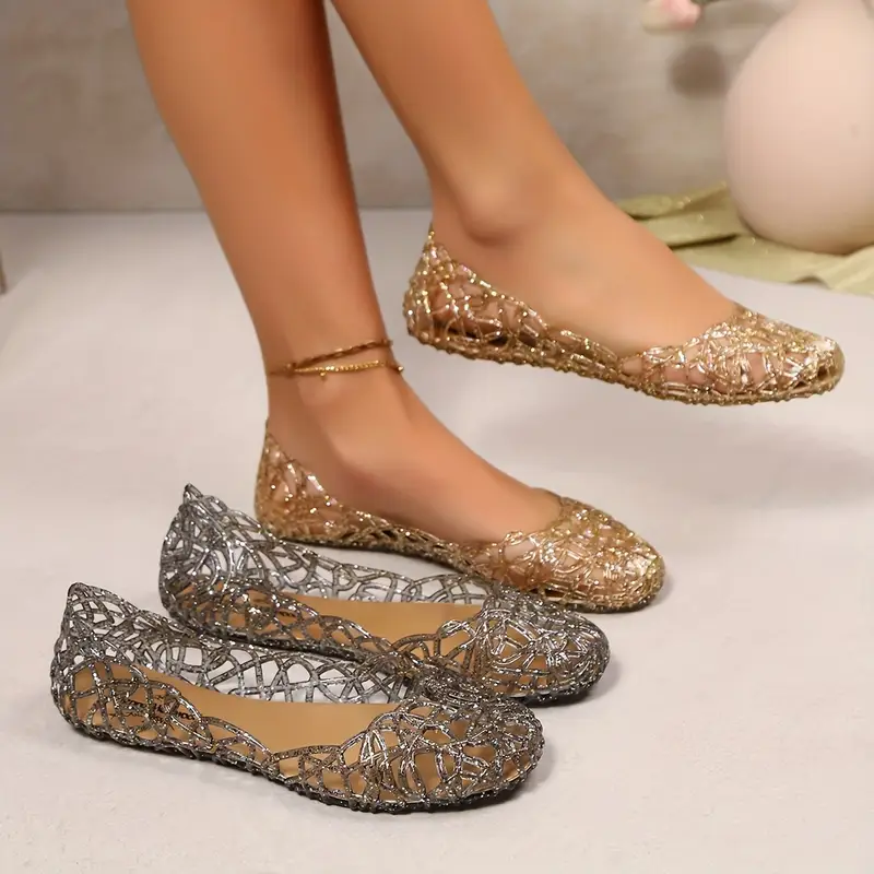 Peep-Toe Soft Sole Flat Shoes