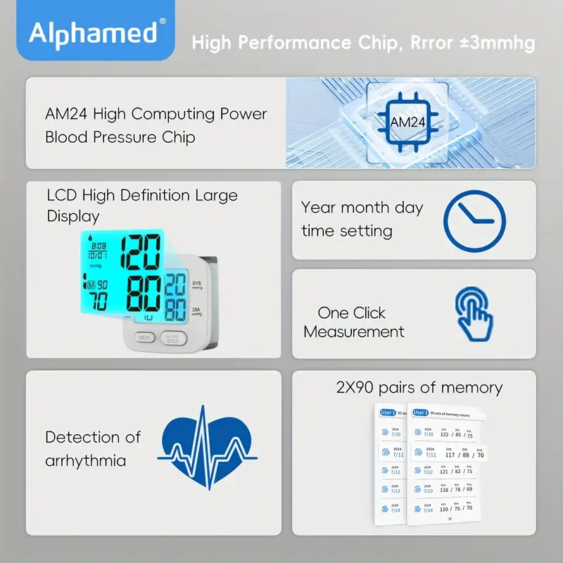 Home Wrist Blood Pressure Monitor, 13.46-21.34 cm Adult Wrist Blood Pressure Cuff,