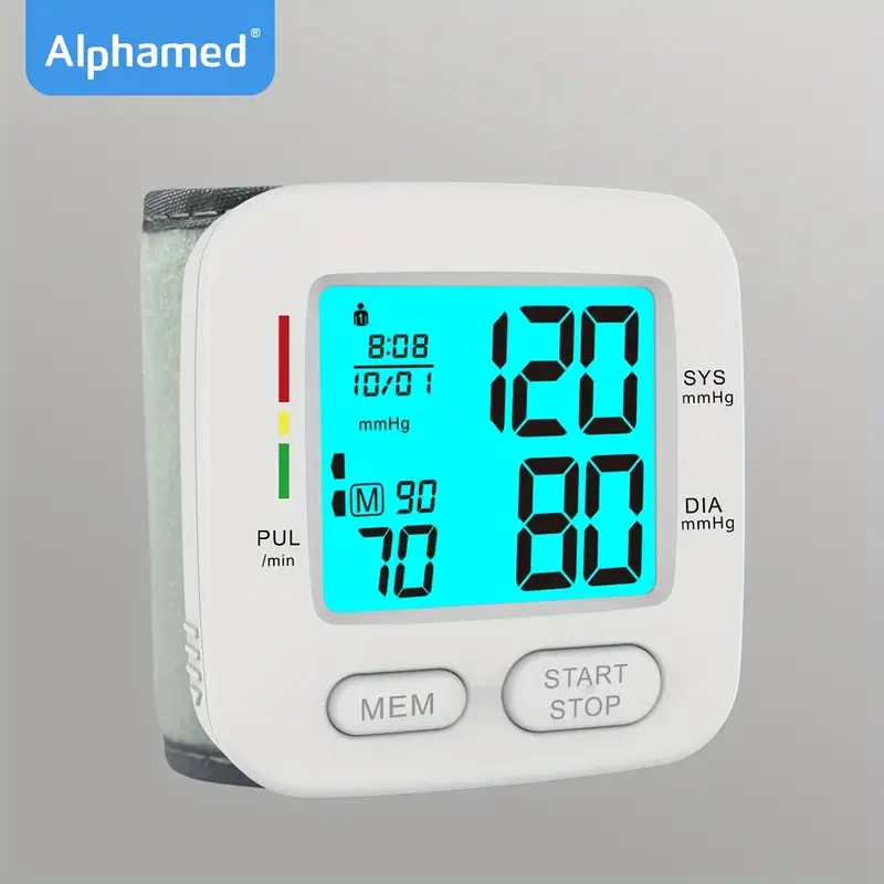 LCD Ice Blue Backlit Wrist Blood Pressure Monitor